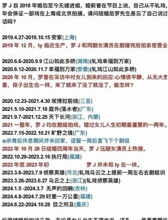 于是粉丝迅速行动,梳理罗晋近年行程记录,发现他几乎全年辗转于各大拍摄地。
